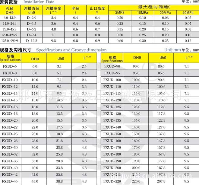 FXUD孔用U形組合密封